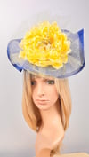 Blue Fascinator Large Yellow Flower Sculpted Sinamay Headpiece