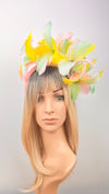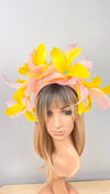 Yellow Pink Fascinator Headband Feather Headpiece Wedding Hat